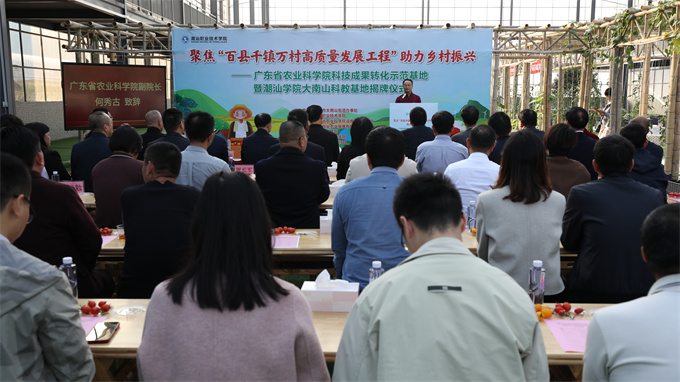 12月29日下午,潮汕职业技术学院、普宁市大南山街道和广东裕业农业发展有限公司举行广东省农业科学院科技成果转化示范基地暨潮汕学院大南山科教基地揭牌仪式。