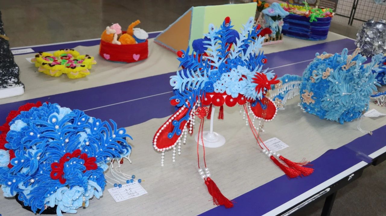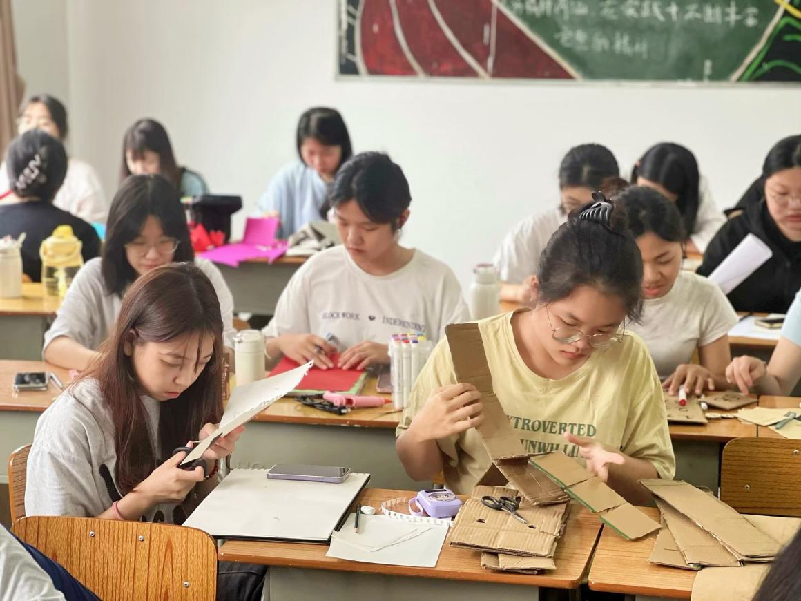 前期课堂上作品制作,制作材料除了必要的手工耗材以外,大部分均是同学们对废旧物品的二次创造。为了汇报展的顺利开展,也为了呈现最佳效果,师生们除了利用课堂时间以外,在深夜的宿舍中,宿舍走廊中也到处充斥着他们的身影。