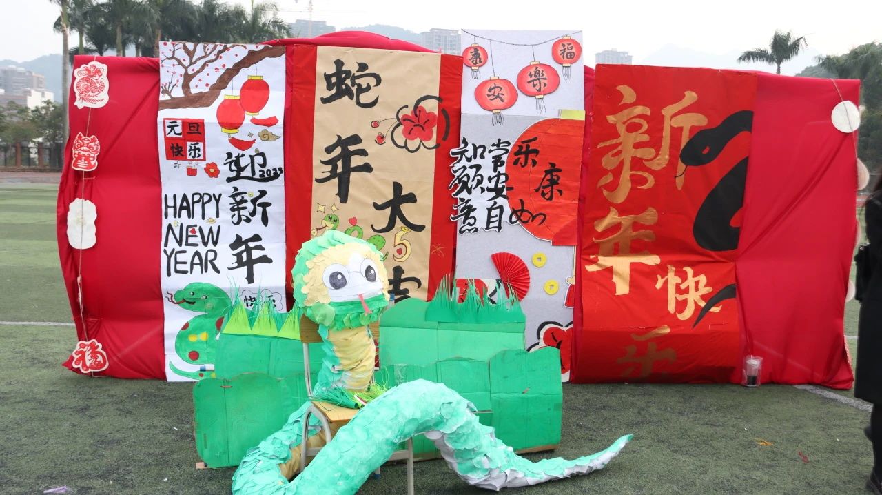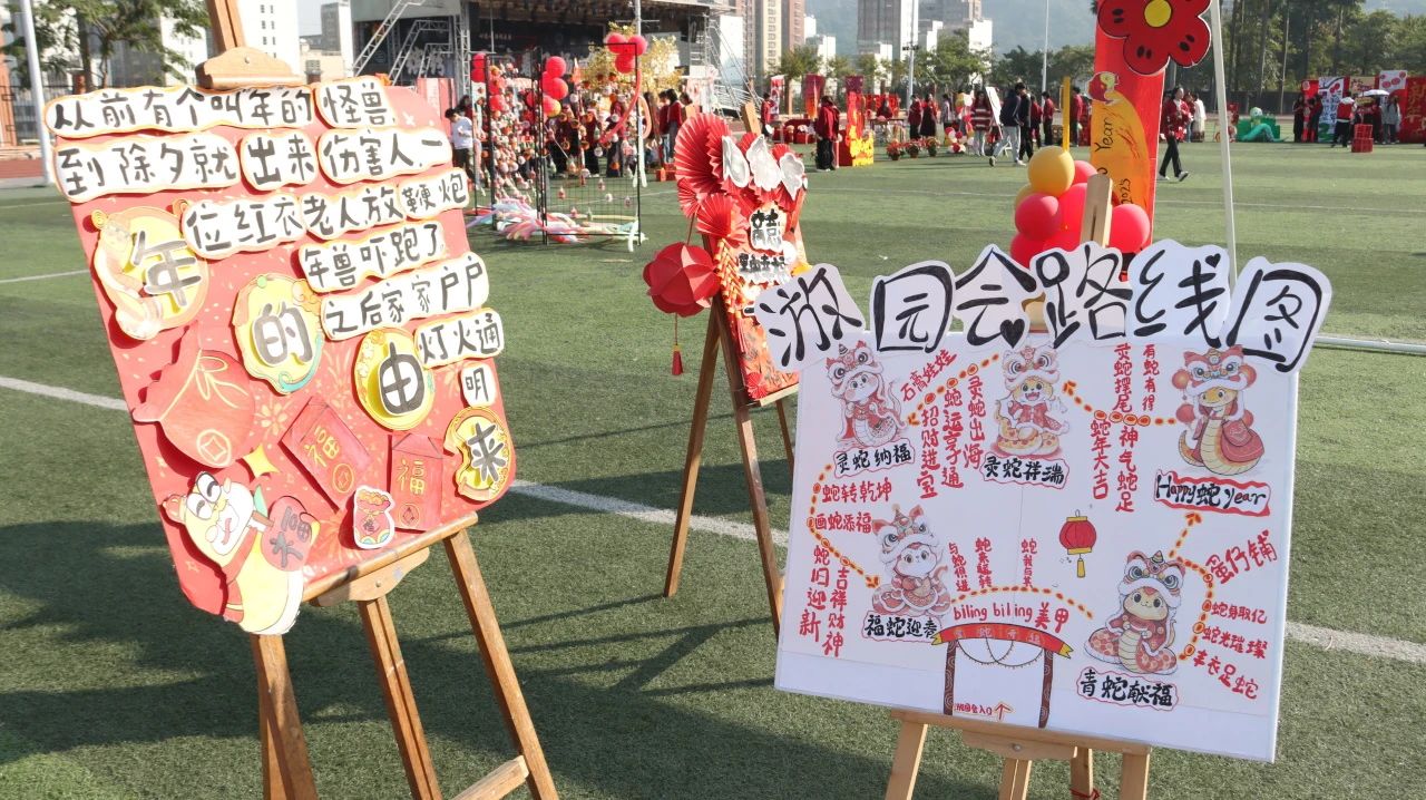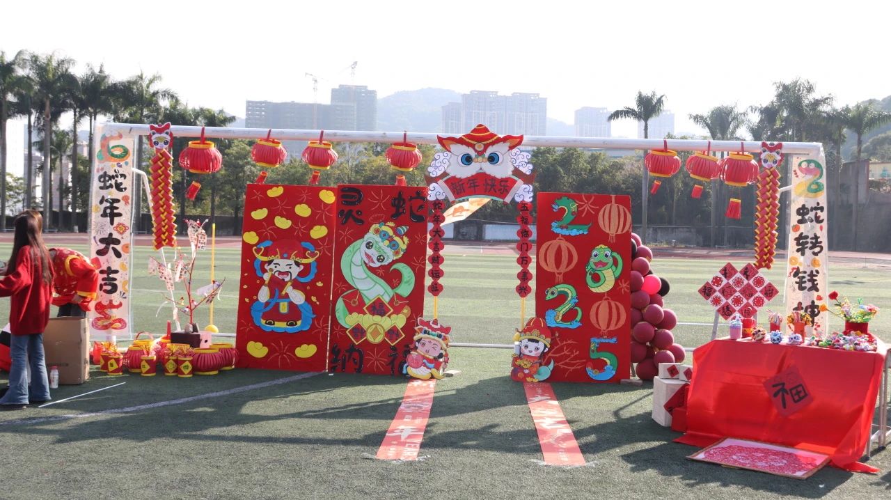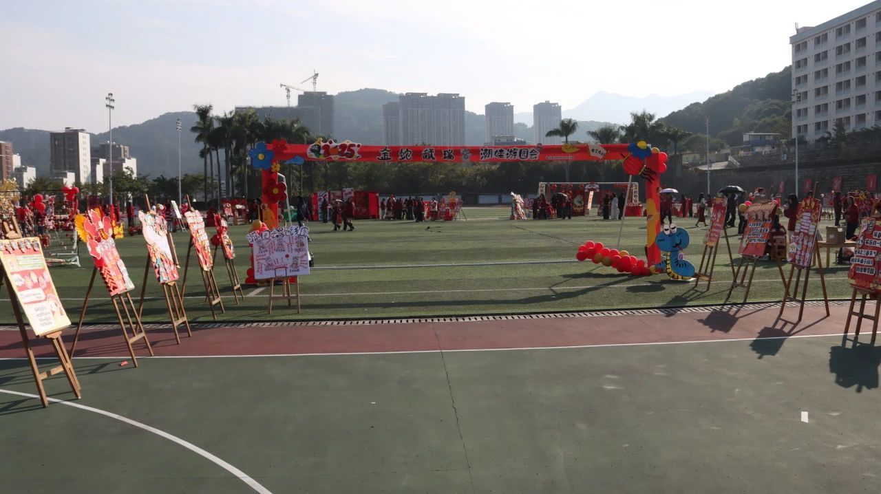 经过师生连续三周的准备,12月31日下午,项目一“金蛇献瑞,‘潮娃’游园会”之传统文化主题活动在校足球场顺利举行。