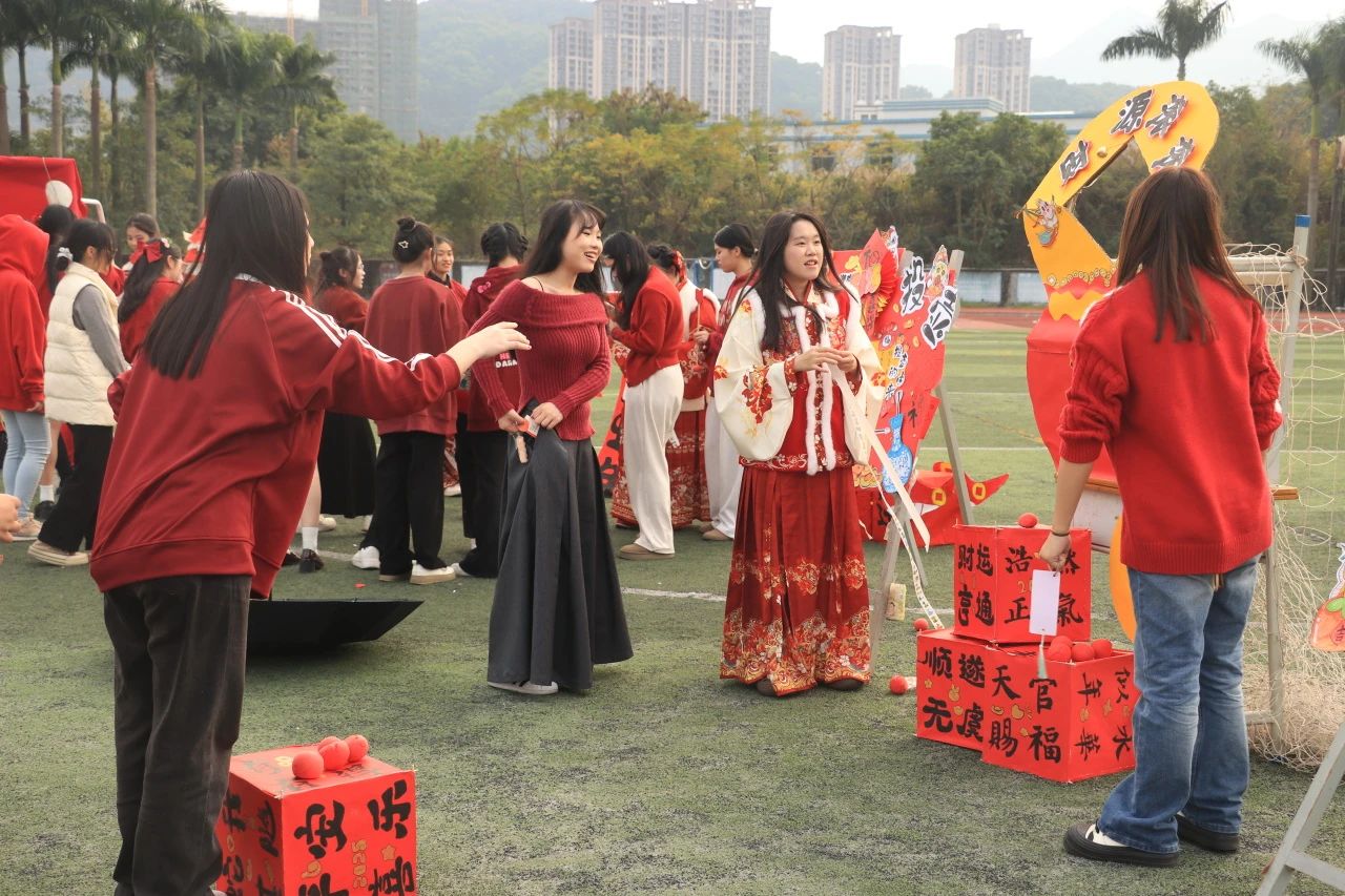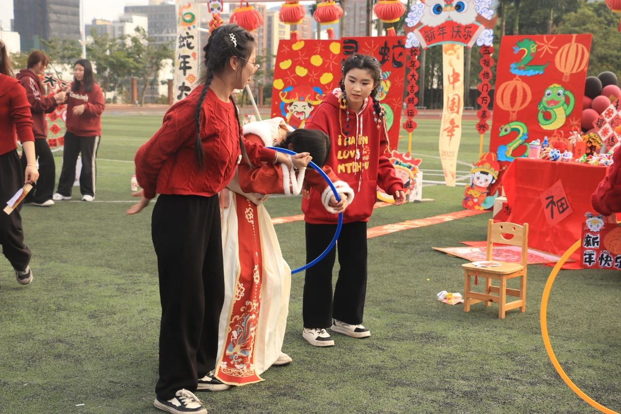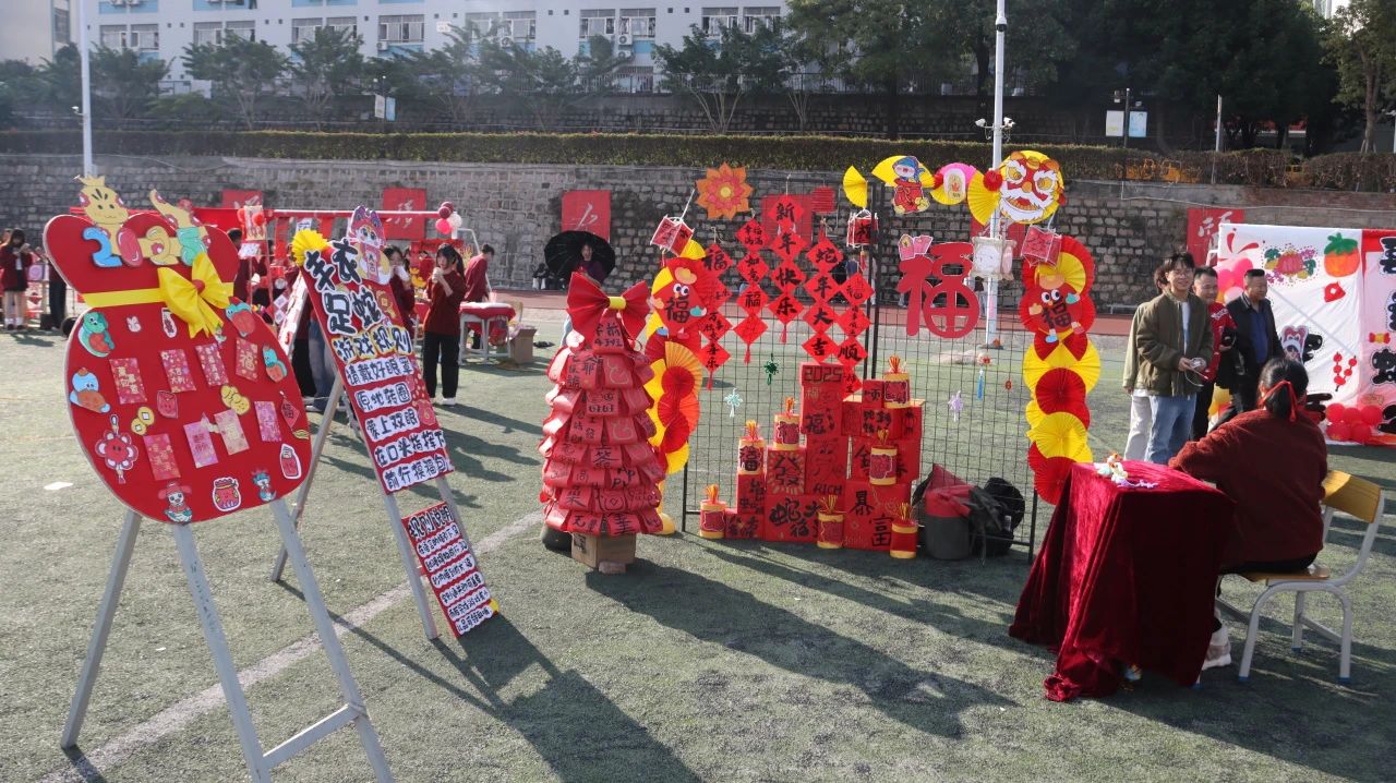 经过师生连续三周的准备,12月31日下午,项目一“金蛇献瑞,‘潮娃’游园会”之传统文化主题活动在校足球场顺利举行。