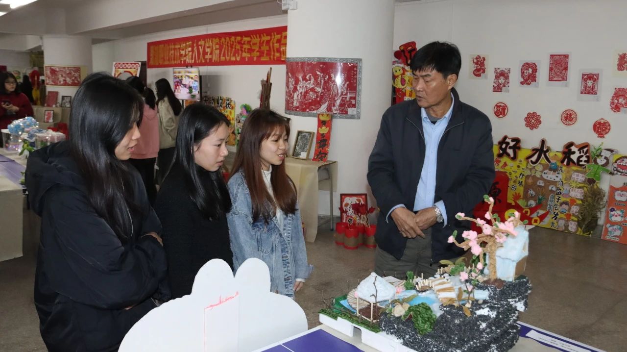 辞旧迎新,跨过2024迎来2025年,项目二人文学院专业成果作品展于2025年1月2日在综合楼一楼正式开幕。学校校长曾向昌、教学督导任乃林教授亲临现场观展。曾校长仔细观看每一幅作品,对学前教育同学们的成果给出极大的赞赏,他希望每位同学都能从教学项目中获得知识和技能,为日后的实习、工作打好基础。